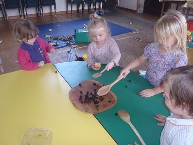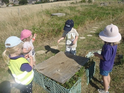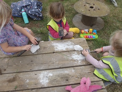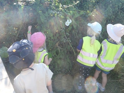 Picking, eating and crushing blackberries, smashing chalk, opening poppy heads and scattering the seeds, learning new yoga poses and listening to stories and playing games from ‘I Can’ (Children’s communication charity) were a few of the favourites.