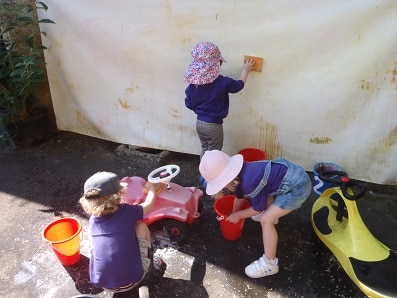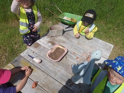 Clay faces. Using their hands to squash the clay the children used stones/sticks/leaves/petals for the eyes, nose, mouth and hair.