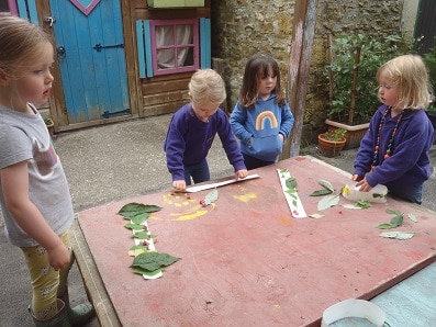 Fashion a crown. Made out of leaves, flowers, sticky weed or anything the children could find they became a king or queen of green with a natural crown.