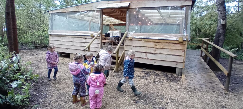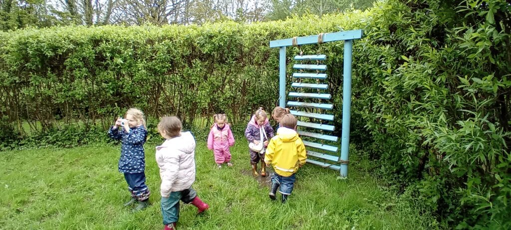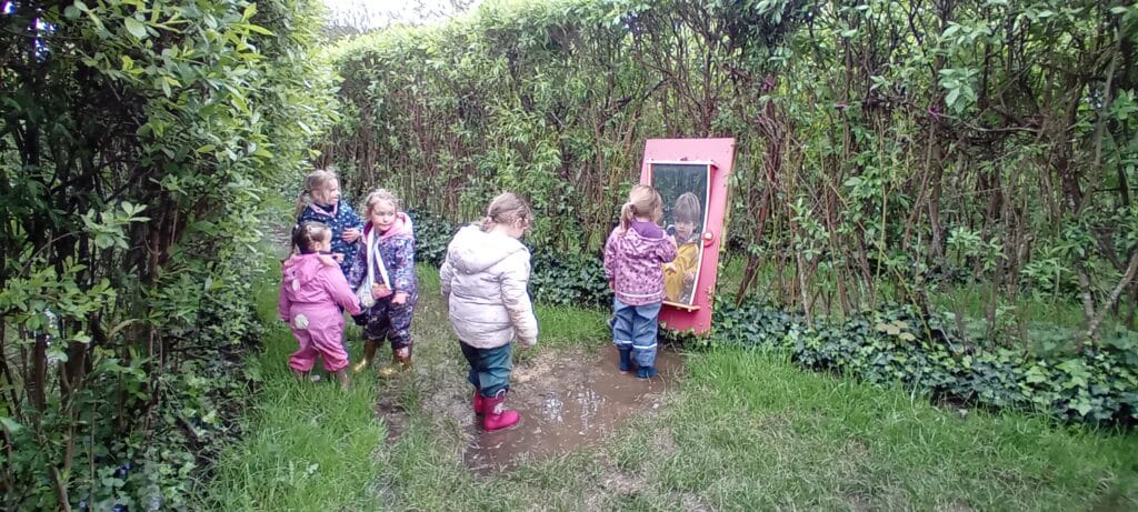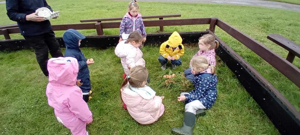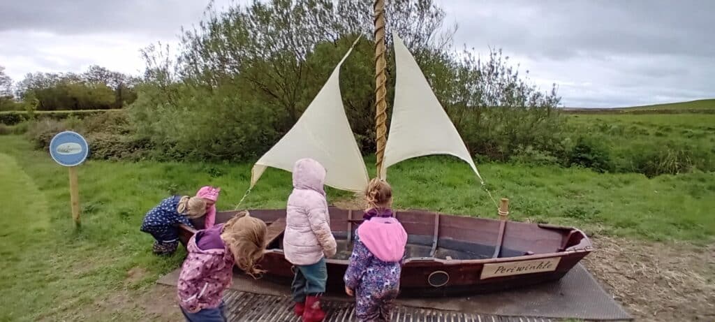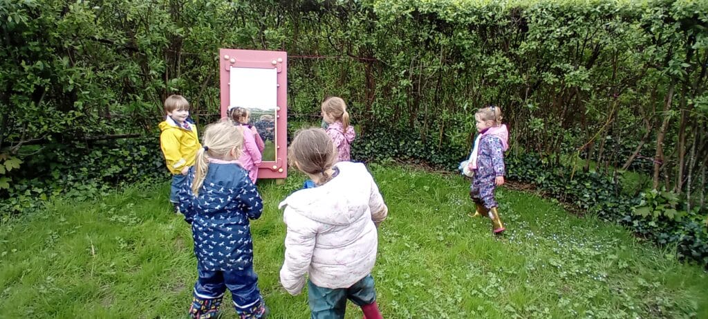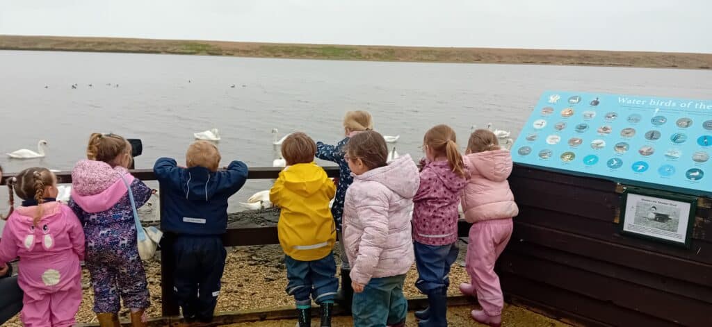 Meeting at the Swannery this week the children came prepared for the wet weather. Wellies were definitely needed, however we were lucky not to get any rain. After listening to ‘The Ugly Duckling’ story in the outdoor classroom Abbotsbury Swannery kindly offered us we headed out to follow the Bramley Hedge Trail. Later, the children built a nest for their eggs and carefully decorated them. After lunch the children went on a nature hunt and got lost in the maze. We ended up at the play area for our final stop of the day.