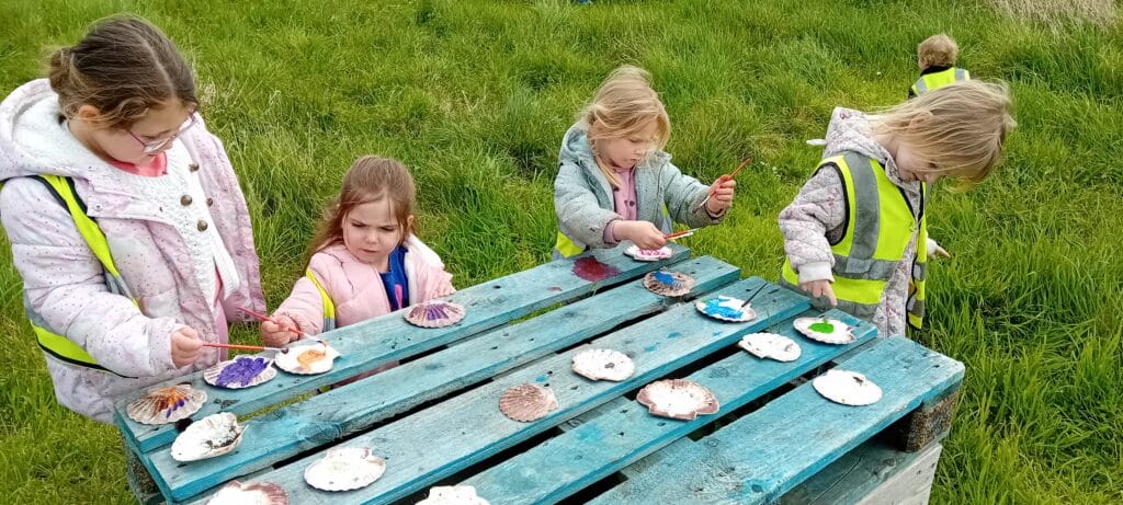 Other activities this week included painting shells at the allotments, and checking the tadpole’s progress.