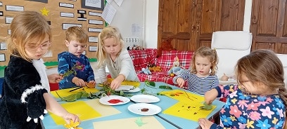 After collecting natural items at the allotments the children later used them to paint and make marks with.