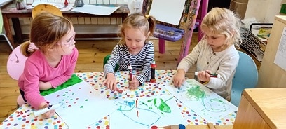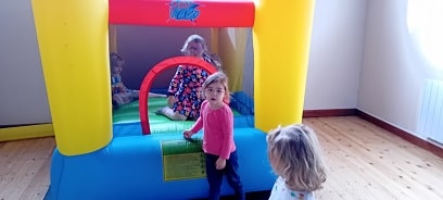 Indoors the children bounced on the bouncy castle, enjoyed our spotty table, and practised their signing for the word ‘please’ and their yoga positions.