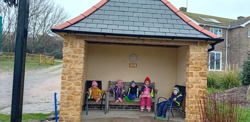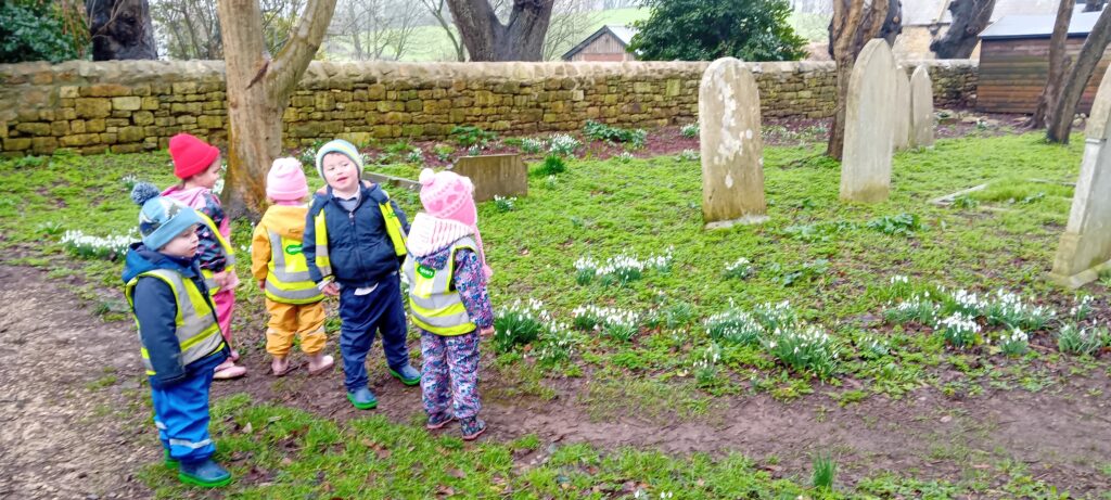 On a walk around the village, the children spotted beautiful snowdrops popping up, a sure sign that spring is on its way. and enjoyed a well-earned rest in the new bus shelter.